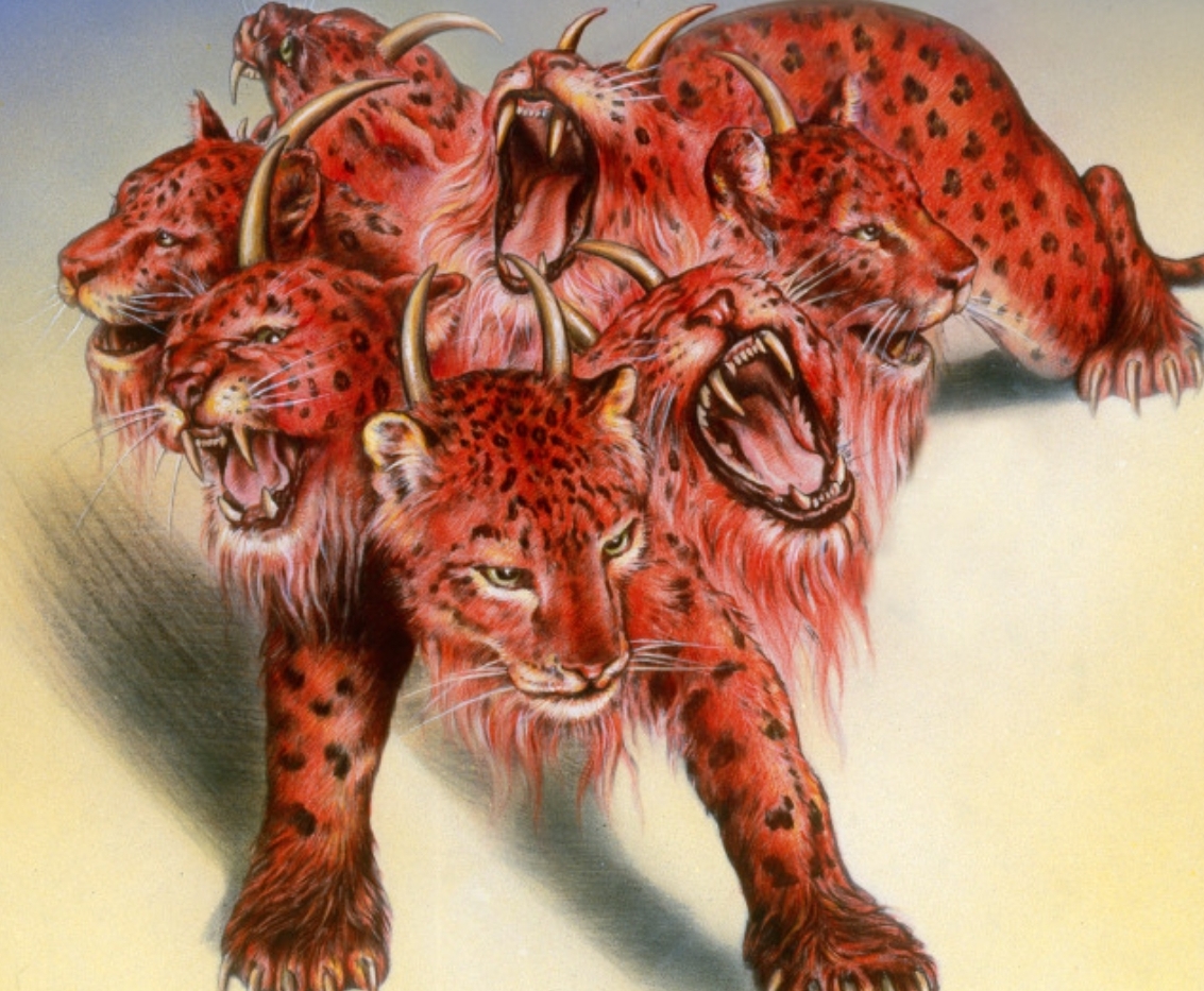 Vedendola, mi meravigliai moltissimo. Allora l’angelo mi disse: “Perché ti meravigli? Io ti spiegherò il mistero della donna e della bestia feroce che la porta, quella che ha 7 teste e 10 corna. La bestia che hai visto era, ma non è, e sta per salire dall’abisso, e se ne andrà verso la distruzione.