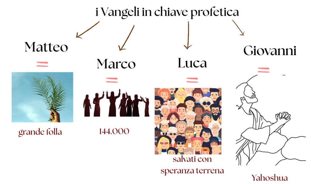 Mentre il Vangelo di Matteo, che analizzeremo in questo articolo, è indirizzato alla grande folla di Apocalisse capitolo 7. Infine, il Vangelo di Giovanni rivolge la sua attenzione al nostro Signore Yahoshua, ai suoi pensieri, ai suoi sentimenti nei confronti del Padre, alla sua fede ed alla sua anima più profonda ecc.