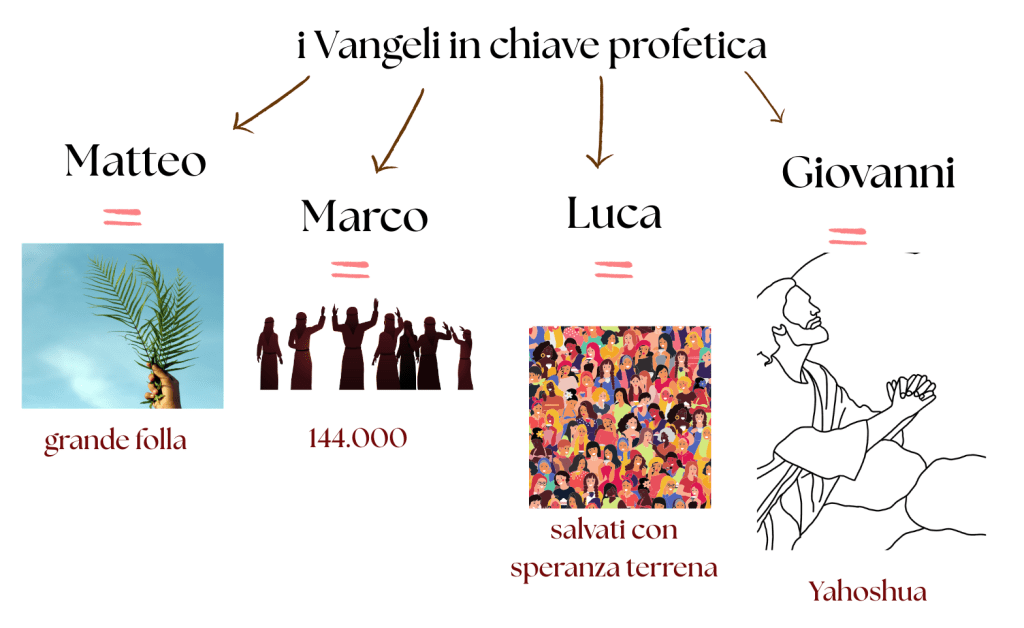 – Perché, inserendo specificamente il nome Iairo, un capo della sinagoga del primo secolo, un personaggio reale, le si dà profeticamente una connotazione temporale precisa. In altre parole, la salvezza di coloro che vivranno sulla terra (Vangelo di Luca), così come la salvezza e selezione dei 144.000, rappresentati dal Vangelo di Marco, hanno inizio nel primo secolo, grazie al sacrificio di riscatto di Yahoshua.